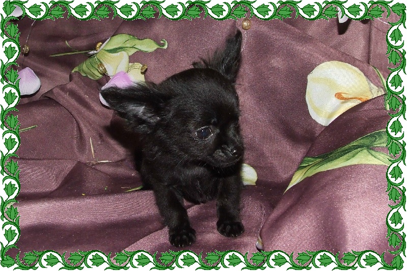 Trés joli "PETIT" male poils longs de couleur noir. Poids à 7 semaines: 540 grammes